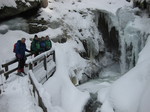 starteten wir bei leichtem Schneefall und marschierten über den Risslochwasserfall auf schmaler Wegspur zur Chamer Hütte. Ein Verlassen der Wege im Bereich des kleine Arber bzw. der Chamer Hütte ist
